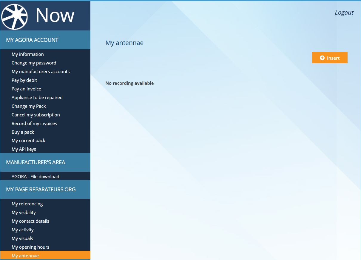 Click on the "Insert" button and fill out the form with the information about your store or antennae :